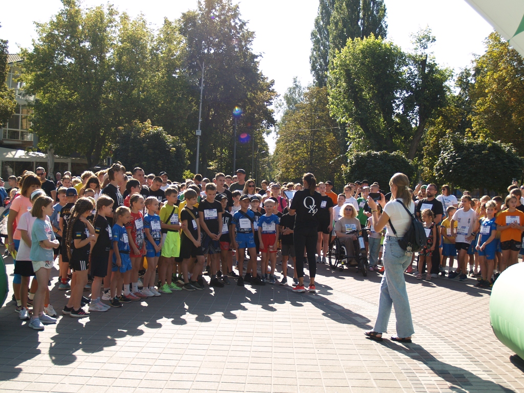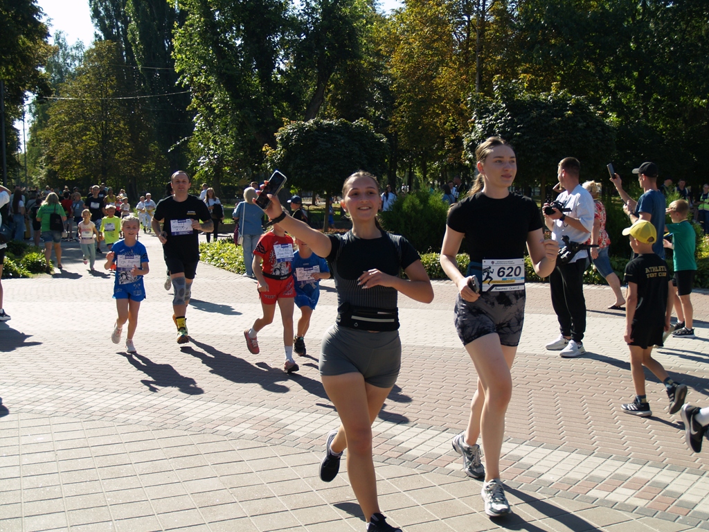 Перед стартом на дистанції, яка цього року проходила мальовничими місцинами міського парку відпочинку «Перемога», запальну руханку провела МС України з легкої атлетики Оксана Романюк.